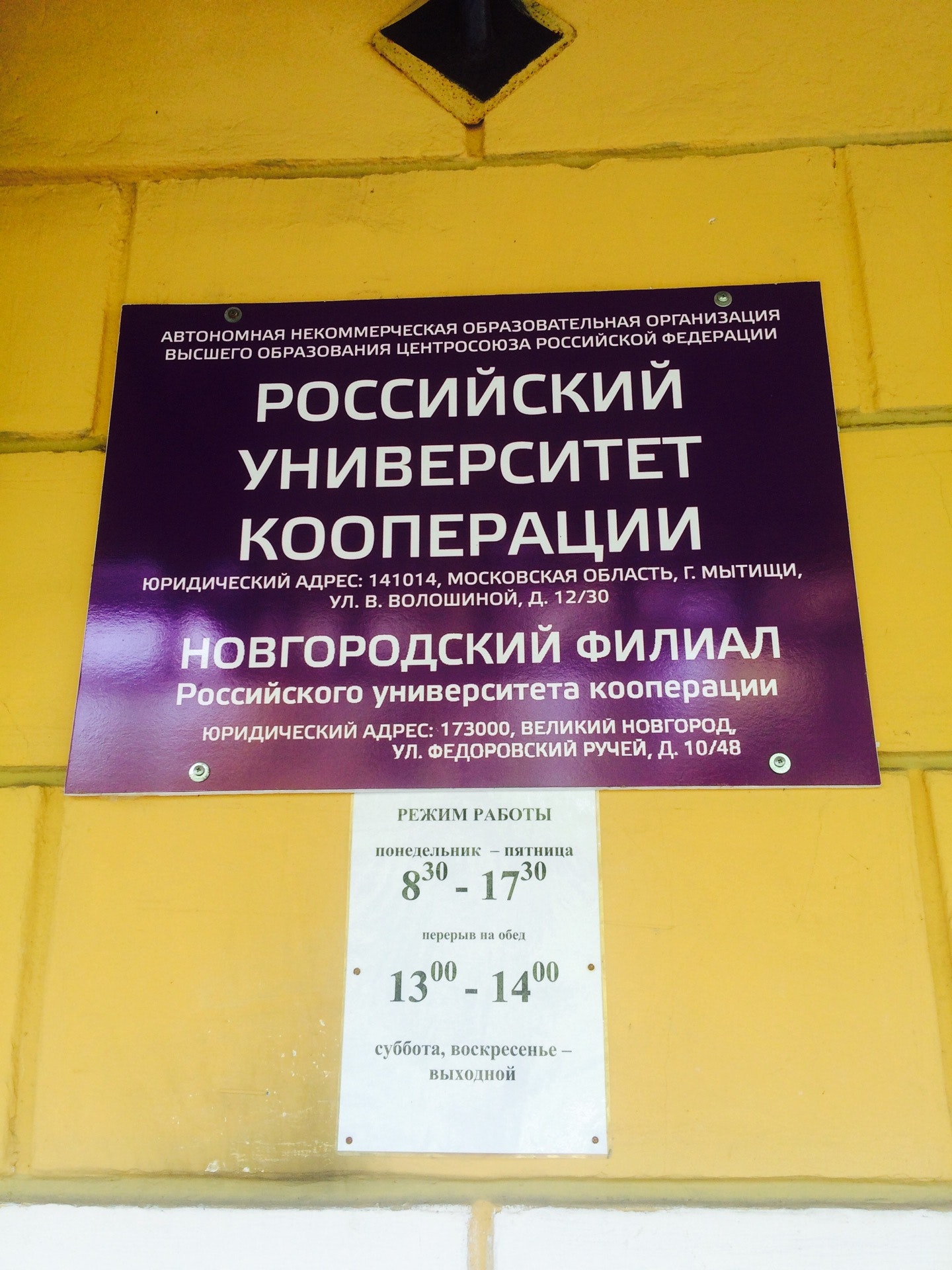 🎓 Адрес, телефон, часы работы «Новгородский филиал Российский университет кооперации».